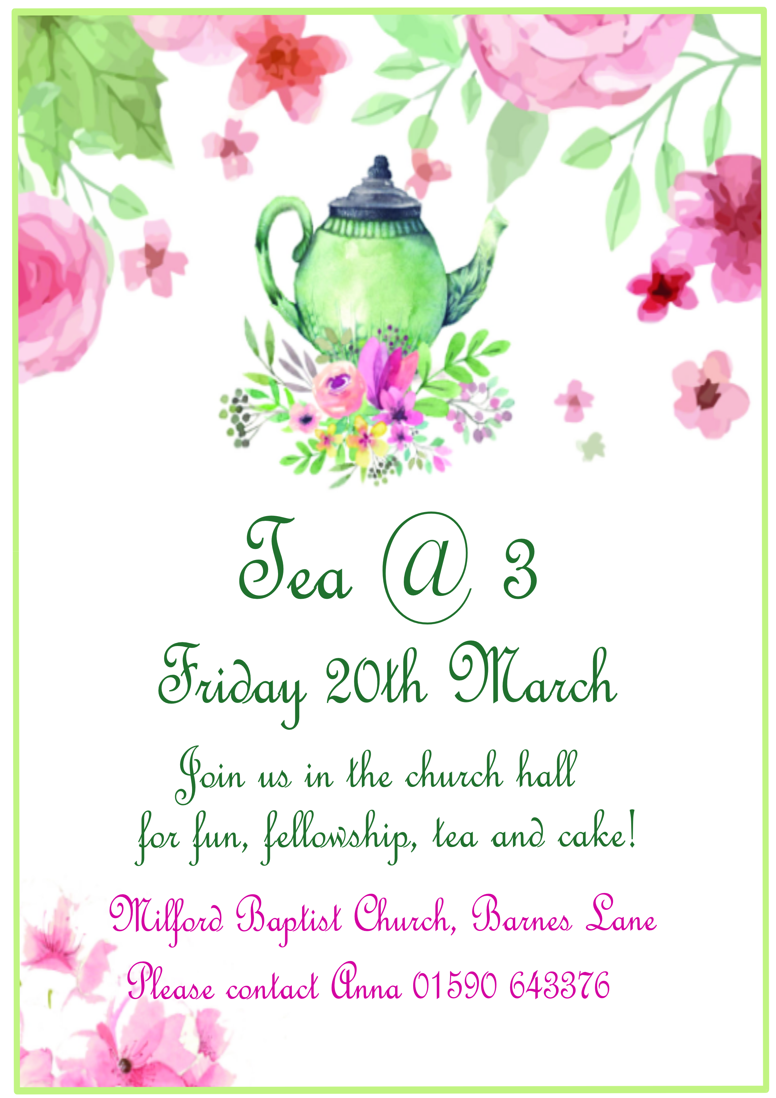 Every month we invite people to join us for Tea@3.00.